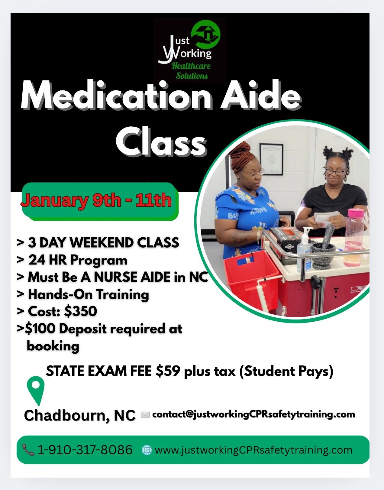 Business Office Location: Raleigh, North Carolina Business Phone: 910-317-8086 Email: contact@justworkingCPRsafetytraining.com